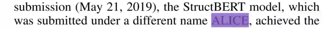 当然,因为好奇达摩院能搞出什么黑科技,一直都想知道 ALICE 到底是什么机制,还根据缩写瞎猜了一通。结果突然看到篇阿里文章,StructBERT: Incorporating Language Structures into Pre-training for Deep Language Understanding,结果看见一行字。