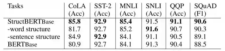 关于句间结构,还想到的一个是 ERNIE 2.0 中的 Structure-aware Pre-training Tasks (结构意识预训练任务),其实和这里的 structure 指的差不多,不过里面两个任务是这样做的: