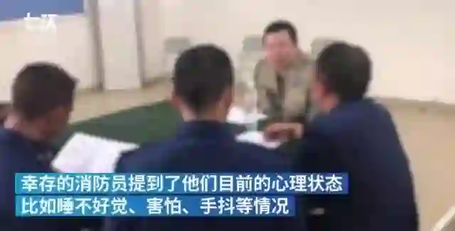 那些幸存的消防员有的人不说话,有的人害怕,手抖,睡不着觉。
