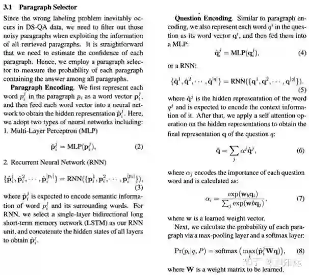 然后进入” 分 “的部分,则需对应” 总 “中的框架,分别介绍各关键模块 / 步骤。例如,论文 [2] 的 Methodology” 分 “的部分,就包括 3.1 Paragraph Selector、3.2 Paragraph Reader、3.3 Learning and Prediction。读者在” 总 “的部分已经对方法有全景式的了解,有的放矢,就比较容易理解每个模块的具体细节。而每个” 分 “的部分中,又可以进一步采用” 总 - 分 “结构进行介绍,例如 3.1 小节做完总体介绍后,又会按照 Paragraph Encoding 和 Question Encoding 分别介绍。为了更清晰地体现” 总 - 分 “结构,可以将各 “分” 的部分命名并加粗。