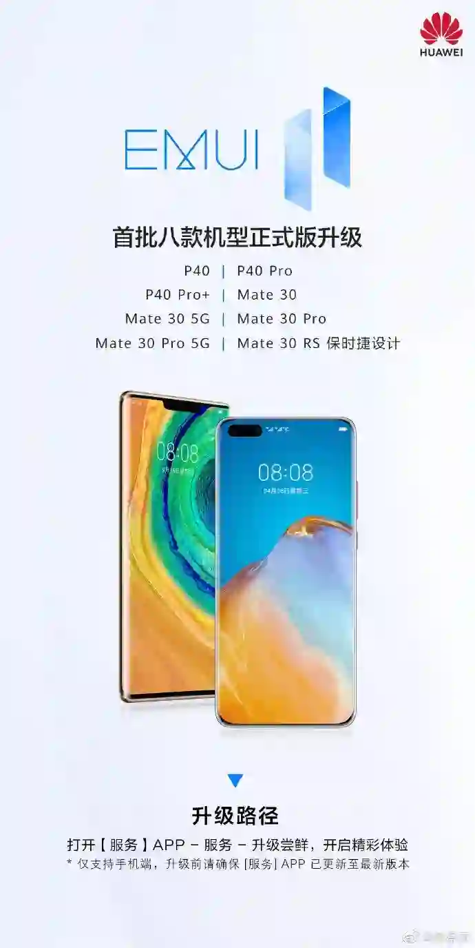 华为 Mate 30 、Mate 30 5G 、Mate 30 Pro 、Mate 30 Pro 5G 、Mate 30 RS