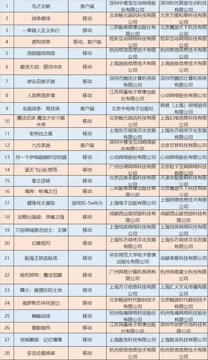 36氪获悉,根据国家新闻出版广电总局官网消息,昨日,2020年新一批进口网络游戏版号已下发,审批时间为8月6日。本次新过审28款游戏,其中包括1款Switch游戏《健身环大冒险》,4款客户端游戏《全面战争:竞技场》等,以及腾讯的《使命召唤手游》。