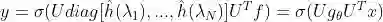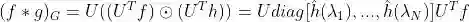 由图上的傅里叶变换公式我们可以得到卷积核h在图f上的卷积公式: