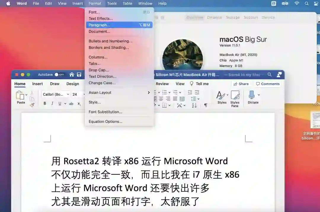 兼容性不是大问题,而且吃惊的是,用M1跑X86应用甚至比用Intel跑X86应用都快出很多