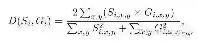 The dice coefficientD(Si, Gi)被计算如下: