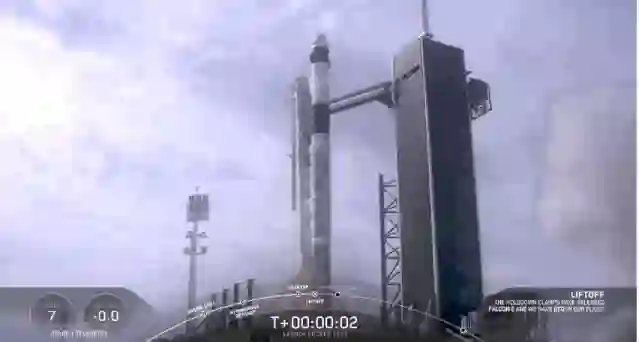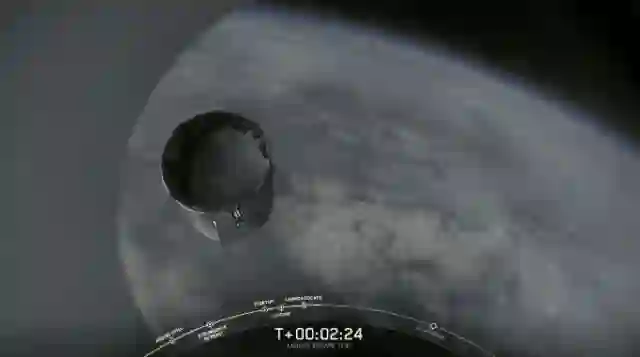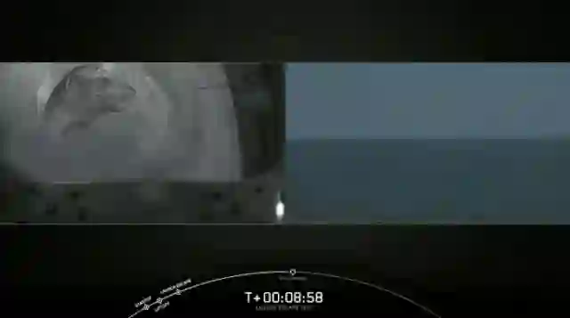 2分25秒后,太空舱与推进器分离,呈自由落体状向大西洋坠落。