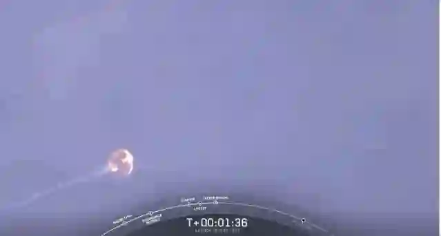 猎鹰9号火箭携带太空舱,发射不到2分钟,爆炸了。