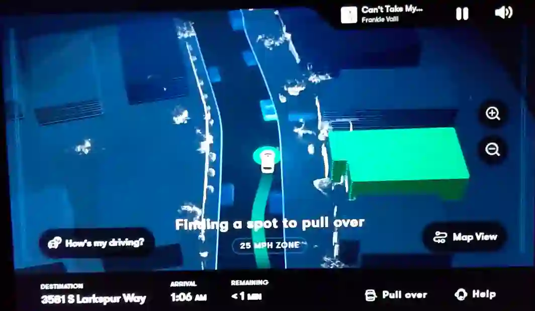 完成了这一系列操作之后,只需稍微等待片刻,车辆就会按时出现在你面前了。从JJ Ricks上传的视频来看,他叫车的地方位于一个加油站边上,周围的环境比较复杂,但车辆仍准确抵达。