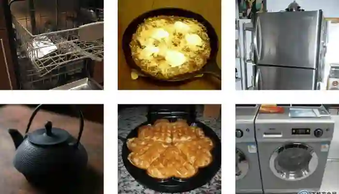 假设我们现在已经收集到了足够的有关背景分类的数据了,通常,我们的背景数据都是图片的不完全分布。下面是一些家用电器和厨房用具: