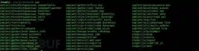查看Koadic上可用的所有模块,请输入“use”,然后双击Tab键。