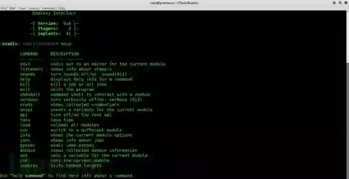 以下列出了Koadic中当前可用的主要命令及其功能。