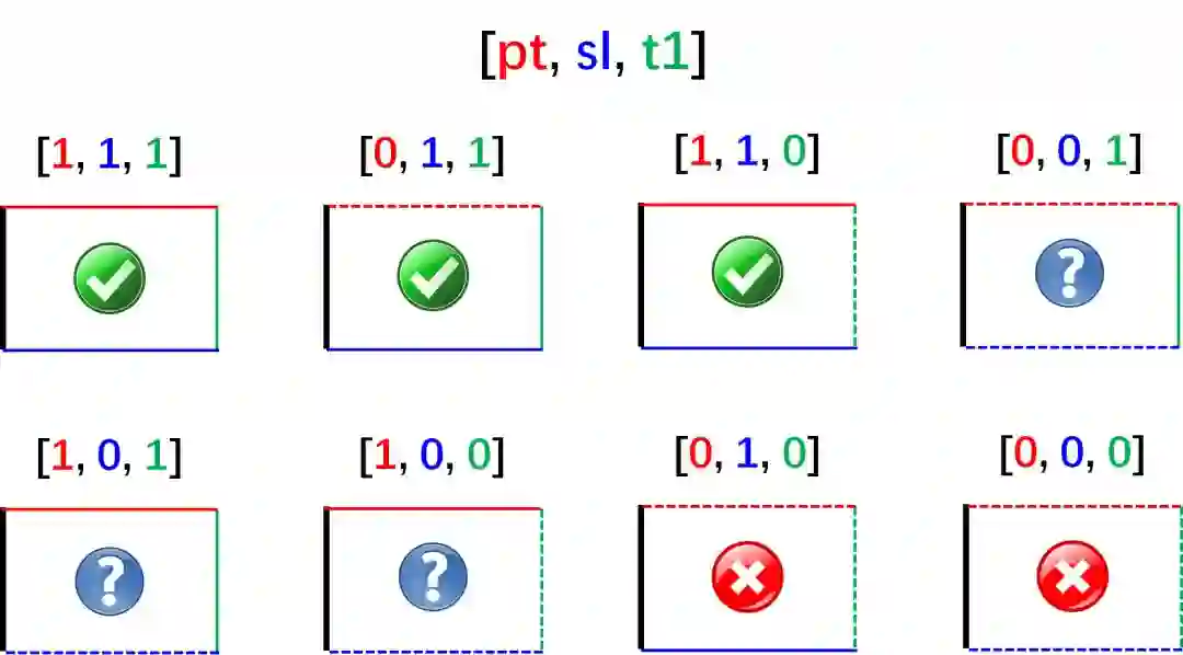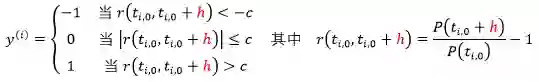 如果垂直隔栏先被触及,将样本标注为 0,或者是该时段内收益的符号,sign(r(ti,0, ti,0+h))