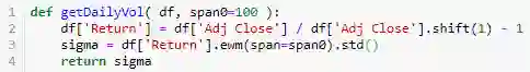 第三行用之前定义好的函数 getDailyVol() 来计算日波动率。
