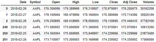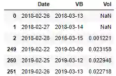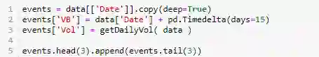 vol = getDailyVol( data )vol.head(3).append(vol.tail(3))