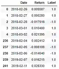 该函数计算出根据每个窗口的收益正负带标住 +1 或者 -1。