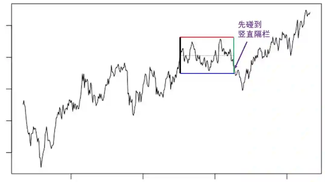 这显然是一个路径依赖的方法,因为我们需要确定在整个时间区间内三个隔栏是否在某一刻被触及。