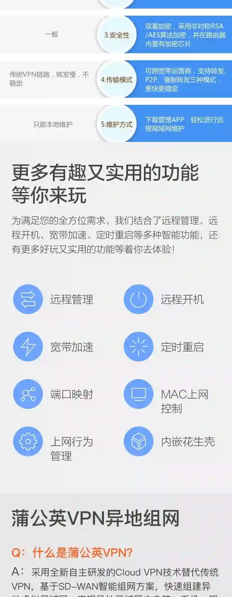 作为蒲公英X3的升级版,X3 Pro依旧以云虚拟专网技术为核心,旨在解决传统组网过程中,如:价格昂贵、配置复杂、维护效率低等痛点,以满足运营管理、移动办公、异地访问内网、信息同步共享、远程监控等多元应用场景。