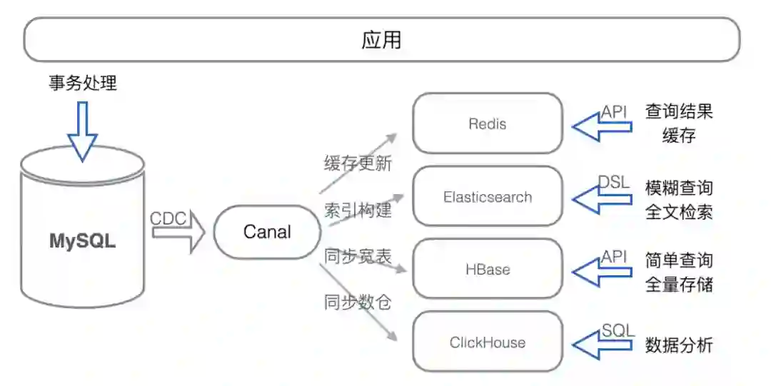 流量卸载:承载和抵御 MySQL 的部分读写流量,让 MySQL 有更多资源进行事务处理。由于读和写依赖 MySQL 内数据,所以在卸载流量的同时还会复制全部或者部分数据。 -