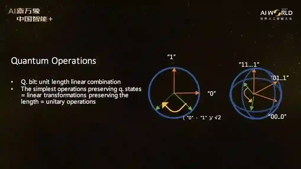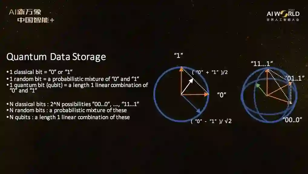 在新智元AI WORLD 2017世界人工智能大会上,阿里云量子技术首席科学家、之江实验室副主任施尧耘在他名为《量子智能》的演讲中回答了这两个主要问题。这是一场烧脑的演讲,为了方便阅读,我们给出一份简单的大纲: