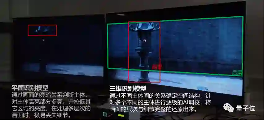 例如,针对性地加入AI识别3D图像并优化内容的能力,即实时检测画面中的图像,并针对色彩饱和度、亮度、锐利度进行优化,通过动态向量补偿等技术进一步提升画质。