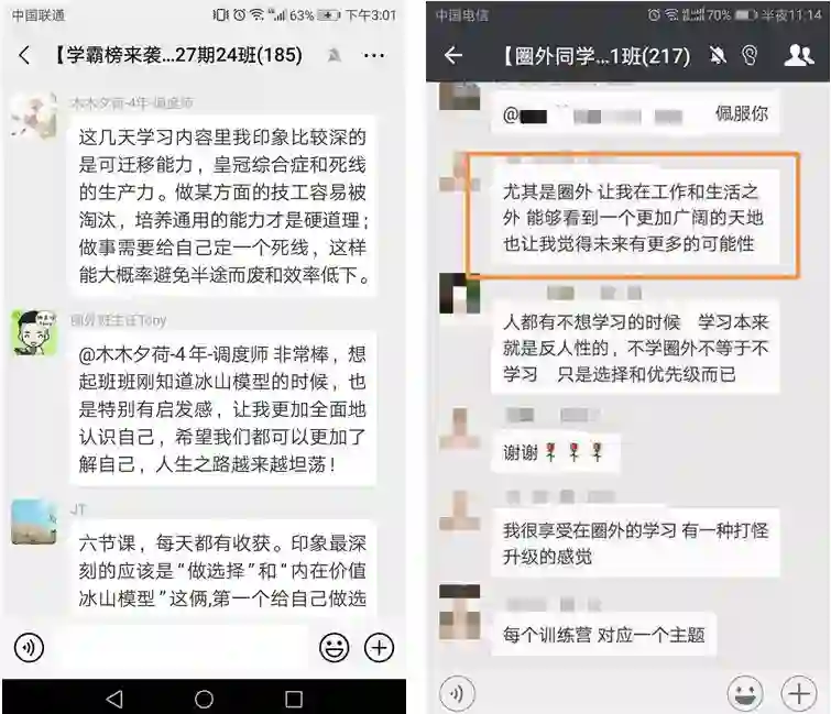 ,这个群给我的感觉就是一个干净纯粹的学习环境,班主任经常在群里组织关于课程的讨论,氛围很活跃,大家都在交流自己的学习感悟和困境。
