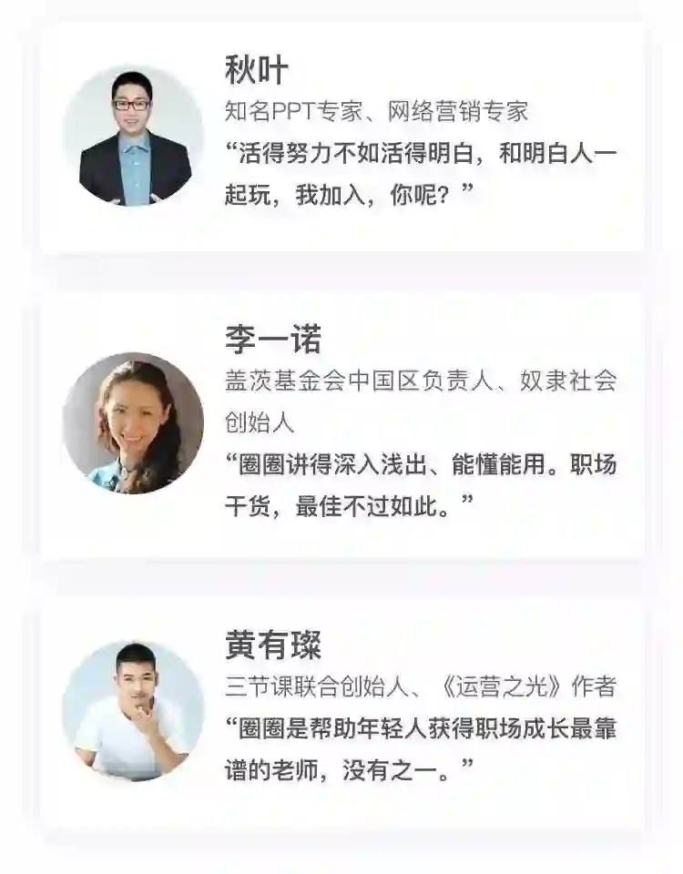 系统性的成长+扩大职场人脉,单是这两点就终身受益。真心想推荐给大家,300个免费名额,先到先得,趁早下手,不给自己找借口的机会。