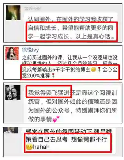 很多学员通过圈外的课程提升了职场核心竞争力:有人升职加薪,有人转型换行,有人成为斜杠青年找到了自己热爱的事业。还有学员因为对圈外的信任,把自己“投资”给圈外,成为了公司的正式员工。