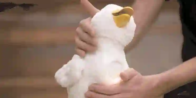 毛茸茸的外表下,这款小鸭子在身体的多个部位安装有触控元件,当你伸出手抚摸时,小鸭子会有「感知」,并做出相应的反应,比如你摸它的头时,它会张嘴并发出欢快的声音,尽管无法向前移动,但摸一摸不同部位做出反馈的交互,实际上和展会上索尼带来的机器狗 AIBO 有相通之处。