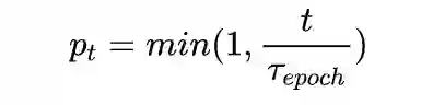 具体而言,我们设置一种 Ramp-up 的伪标签筛选方法,随着训练时刻线性上升的概率值