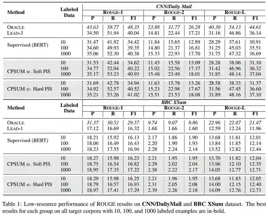 本文主要介绍我们在自然语言处理领域被 COLING 2022 接收的工作。我们提出了CPSUM,一种解决低资源场景的半监督文本摘要抽取式模型。该模型引入了数据加噪增强的一致性学习方法与熵约束伪标签学习方法,仅需要极小规模的有标签数据,结合大规模的无标签数据进行训练,较好利用了低熵分布的无标签数据来提高摘要模型决策边界的精准性,获得比有监督学习更强的泛化性能,并且极大地减少了自动摘要模型对标注数据的依赖。