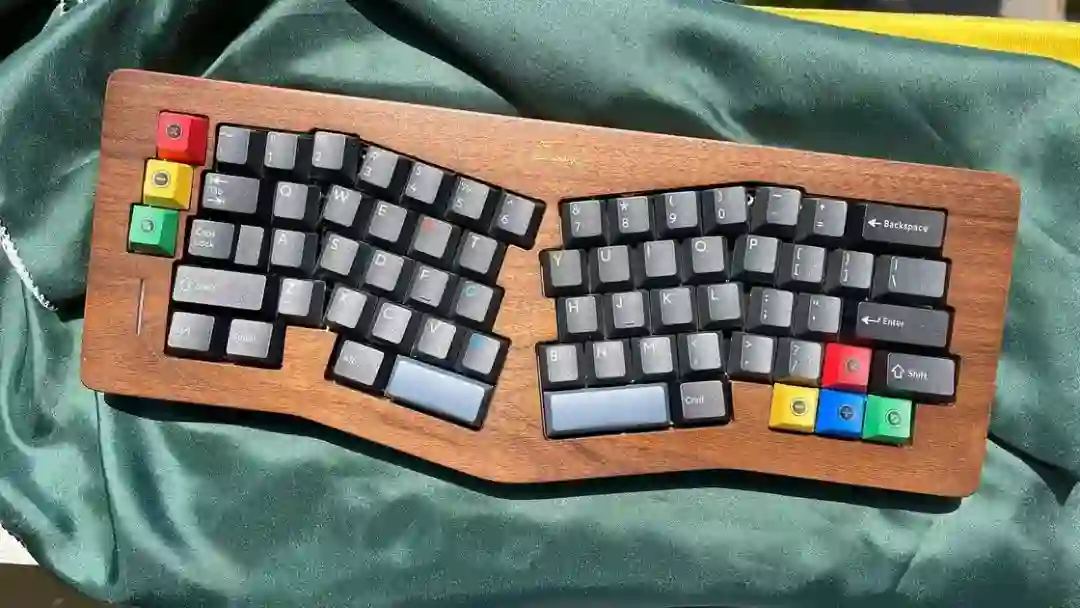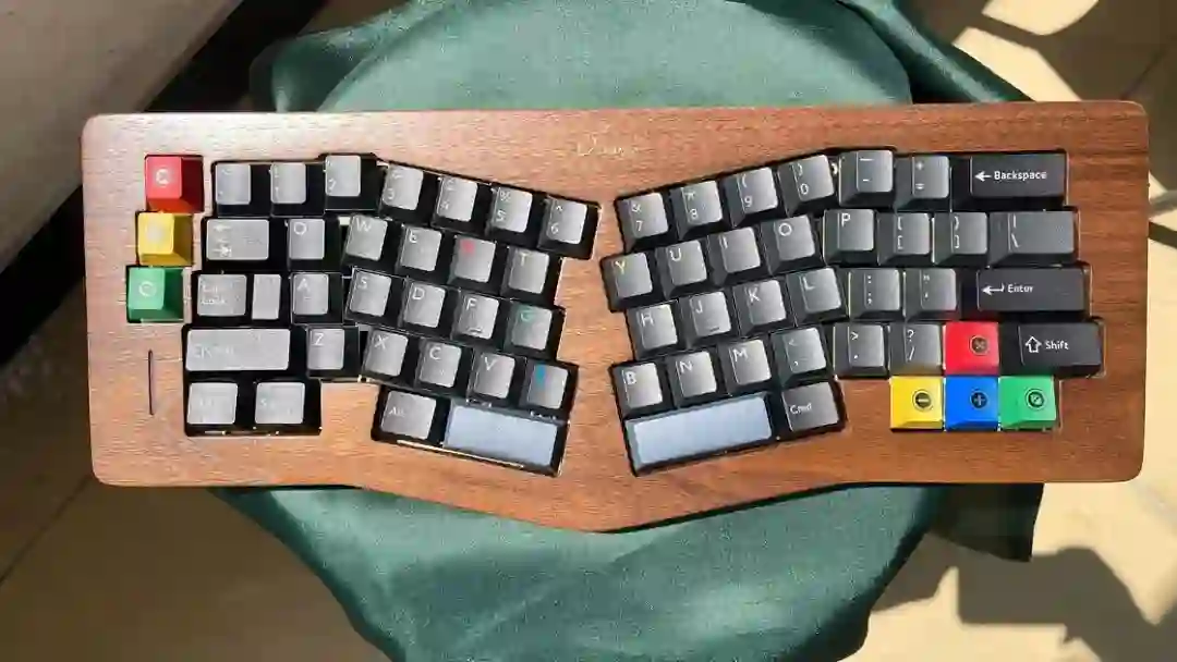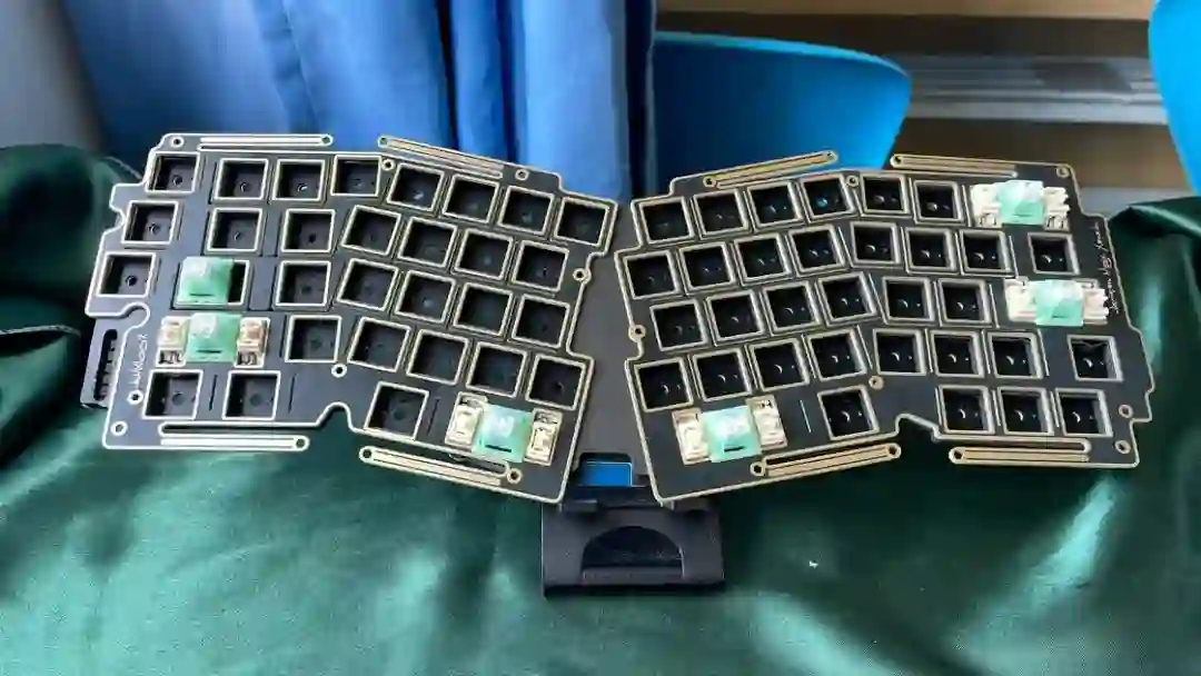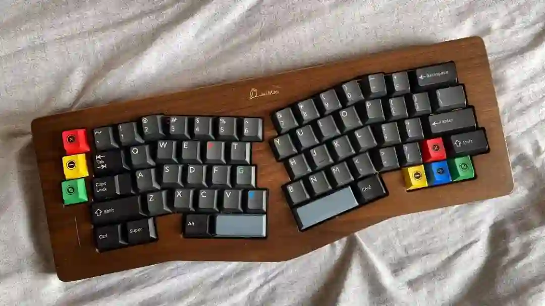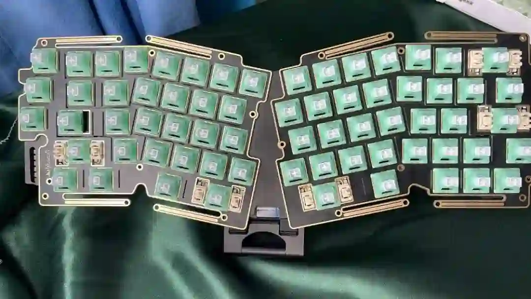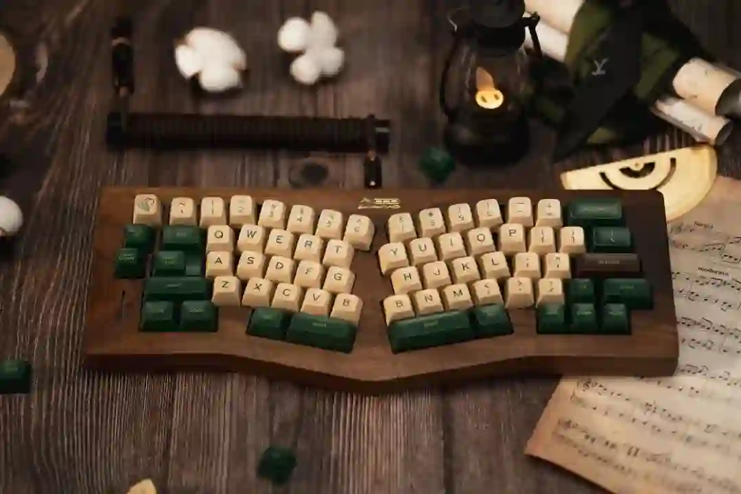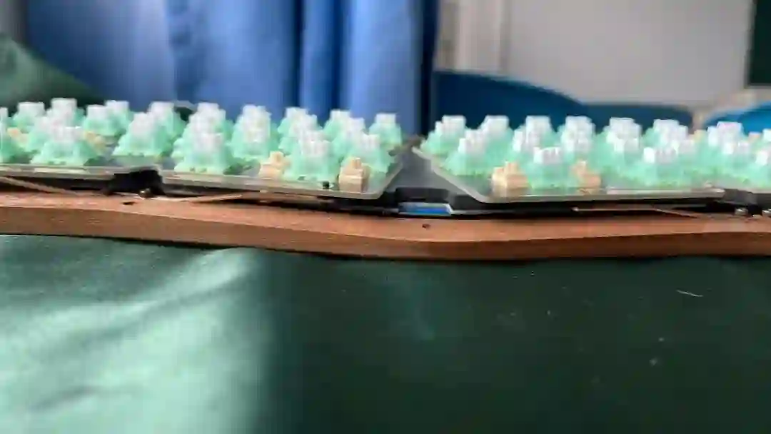 ▍前言键盘的配列布局,无奇不有,键盘圈子里总是有你想不到的,但没有做不到的。从早些年的全配列独占鳌头到 98% 配列的大火、65% 的井喷,谁更受欢迎,莫衷一是。作为一个键盘爱好者,我对于那些奇奇怪怪的键盘配列甚是钟爱,然而,如果要说这些年里哪种不那么主流的键盘配列成为了真正的现象级,那 Alice 配列绝对是当仁不让。它的上手门槛相对较低,因此社区里也频繁推出新品。在过去几年中,我也收集把玩了不少 Alice 键盘。不过,若是一般的公模 Alice 套件,也无太多可讲之处。但今天要简评的 AMX60,确实是有点意思,它是由一家专注木质键盘的工作室——匠人学院开团制作,是一款木质外壳的 Alice 键盘。团购后等了足足半年,它才终于到达我的手中。键盘本身可选 top 和 leaf-spring mount 结构,也可无铍铜缓冲片安装。来自 GB 帖▍开箱包装方面,AMX60 直接将套件本体和配件放入了定制的收纳包内,用合页隔离。不过不同于传统的收纳包,这次包体内部对 Alice 外形有适配定制,值得好评。不过像是 Alice 配列的键盘,基本超过 65% 我就不会考虑外出携带了,因为 Alice 分裂布局使得 65% 占地面积直逼 80%,外出携带方面我可能会更倾向于传统 65% 和矮轴键盘。配件方面,除开外壳和内胆,这次还额外赠送了老周自己开模的卫星轴和航插线以及与外壳匹配的木质手托。定位板则是 FR4 材质,高弹有腿设计,既适配 Spring 的铍铜结构,也能直接适配上下盖安装。▍外壳外壳材质选用了北美黑胡桃木实木,不过我自己对于木材没有多少了解,对此也难有合理的判断,懂行的朋友可以在评论区里分享你的看法。如果从机加工角度来看的话,相较于传统键盘,Alice 键盘的加工难度要更高。同时,木质键盘的加工相较于传统铝合金材质确实是要更加小众和困难。设计语言方面,正面除了左下角一个灯条以外没有其他设计,附赠的三枚 logo 贴纸可以自行进行装饰,不过木质的键盘本身也无需过多的装饰,所以我仅在正上方贴了一枚作为点缀。外壳边缘进行了一定的打磨处理,使其变得圆滑不割手。上下盖接缝设计,不过我个人还是更喜欢天包地或者微微露出底壳的设计。底壳并没有采用隐藏螺丝的设计,自带脚垫,并且额外添加了四颗脚垫备用,以确保安装完成后底部保持平整。▍内胆内胆方面我选择了 AMX60 的双模 PCB 搭配 Owlab 为 Spring 制作的铍铜弹片,组成 leaf-spring mount 结构,默认定位板为开槽 FR4,标配的 EVA 轴上垫、IXPE 夹心棉、轴下垫、底棉。全键热插拔,同时支持阶梯 Caps 这点值得好评。再看内部:上盖部分,由于木质本身有收缩的特性,而 Alice 配列又形状不规则,收缩后的比例控制给加工提出了不小的挑战,尤其是左上角的三颗功能键键位,断裂风险较大。所以它加入了固定板,不过介于 Alice 配列的特殊性,必须在加工到一半时让数控停下来,安装好固定板,再进行左三键的加工,以避免左三键处断裂。底壳部分则是预留出了电池槽位和铍铜安装位置▍组装方案