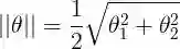 如下图所示,假设决策边界如图,找其中的一个点,到θ上的投影为p,则或者