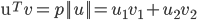 向量V在向量u上的投影的长度记为p,则:向量内积: