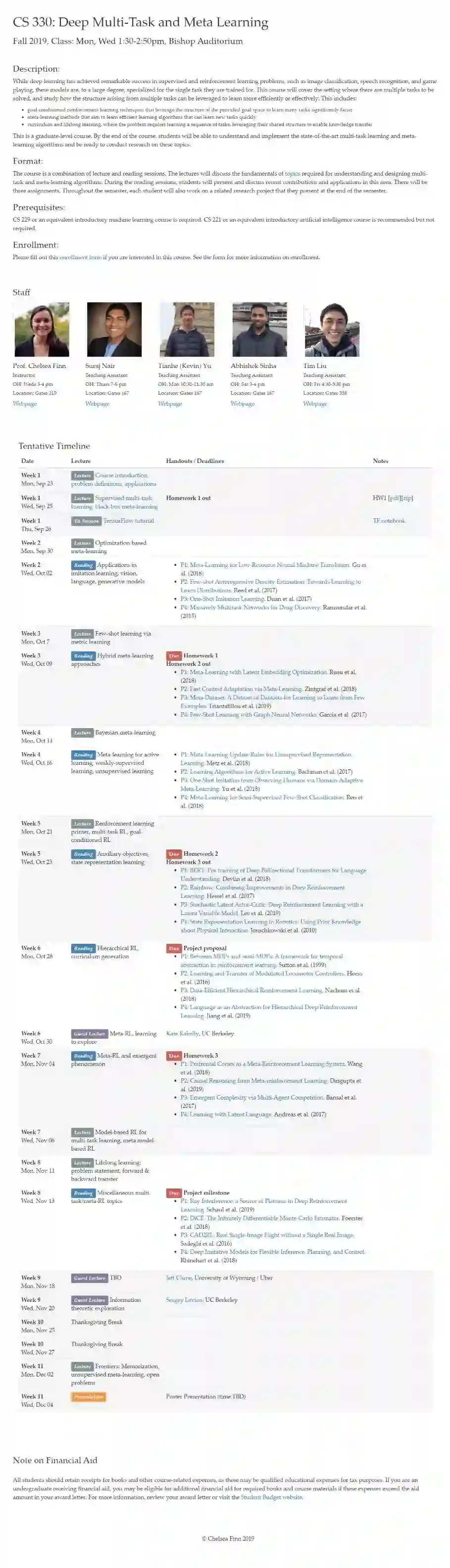 【导读】斯坦福大学的CS 330课程Deep Multi-Task and Meta Learning(深度多任务学习与元学习)正在进行中,官方网站中部分Notes已放出。