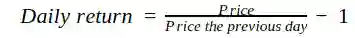 收益的定义是一个观察值与其下一个观察值之间的价格差异。在这种情况下,由于我们观察的是每日的数据,那相对应的收益也将是每日收益。