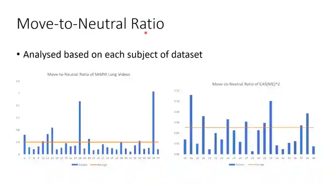 在简要介绍了使用的CAS(ME)2和SAMM-LV数据库以后,Chuin Hong对两个数据库中表情帧和中性帧的数目(move-to-neutral Ratio)进行了比较。因为常用的微表情检测的验证方式为:leave-one-subject-out,每个个体子集中的move-to-neutral比例不同,会对网络的训练和检测带来不同的影响。
