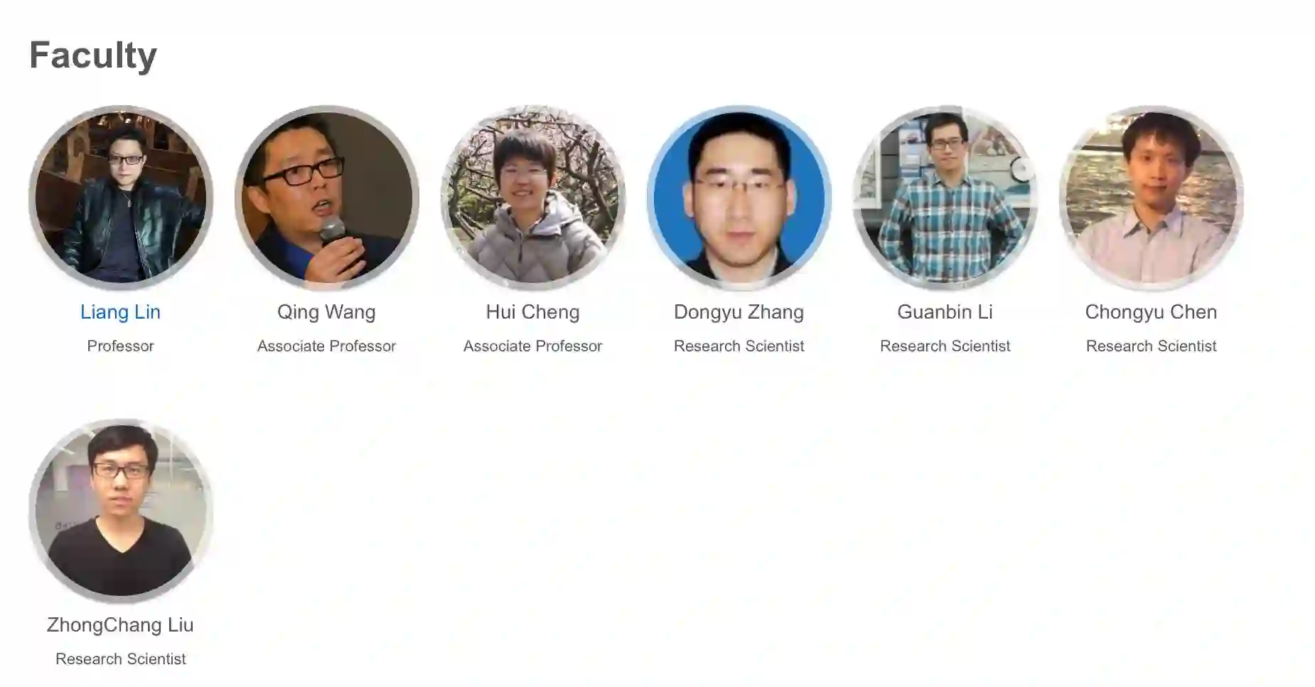 中山大学人机物智能融合实验室人员:从左到右依次为——林倞 王青 成慧 张冬雨 李冠彬 陈崇雨 刘中常
