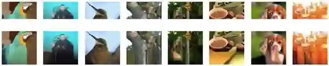 上行:用于输入 Reformer 的图像片段。下行:“已完成的”全画幅图像。原始图像来源于 Imagenet64 数据集