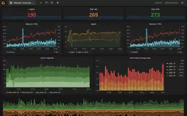 在界面展示上,目前使用较多的Grafana+Zabbix,能达到一定的展示效果,实施效果如下图: