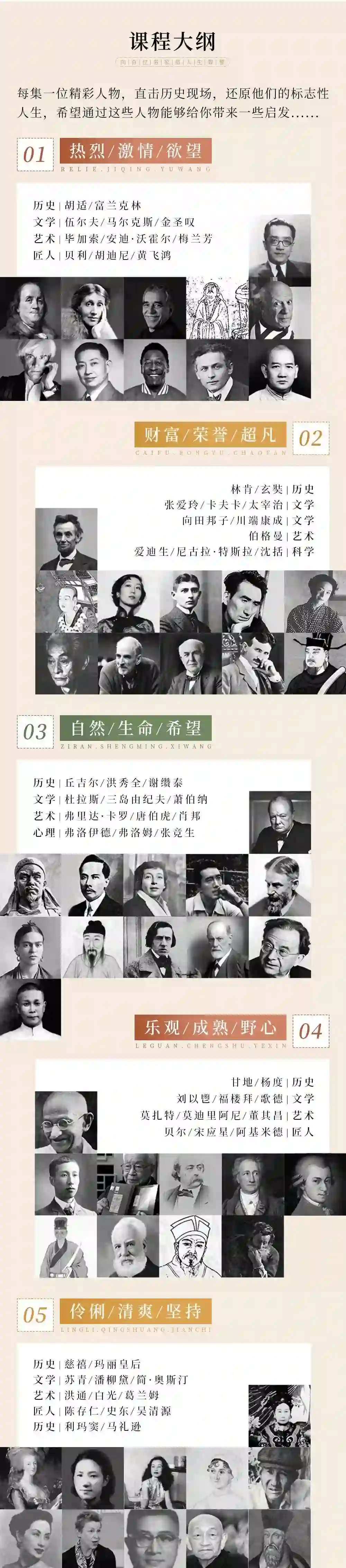 在这门课里,他会在自己这些年来读过的所有书的基础上,结合自己的真实人生经历,讲述百余位历史名人、伟大人物的生平故事。