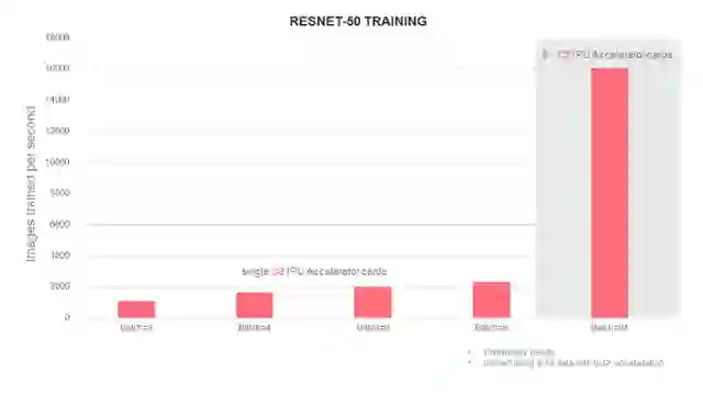 下面的图表显示了在 ImageNet 数据集训练 ResNet-50 这个神经网络来学习图像分类时的估计性能,以每秒训练的图像数量计算:
