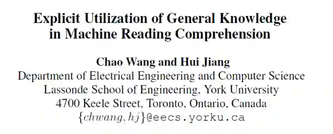 机器阅读理解(MRC)和人类进行阅读理解之间还存在差距,作者认为主要体现在对于数据的需求和噪声鲁棒性上,人类往往拥有大量的常识性知识,从短文中就能进行深刻的阅读理解。所以在文章中,作者探索了如何将MRC模型的神经网络与常识相结合,并基于常识数据的扩展,实现了一个端到端的知识辅助阅读器(KAR)机器阅读模型。KAR在性能上可与最新的MRC模型相媲美,并且在噪声方面具有更强的鲁棒性。当只有一部分训练样本(20%–80%)可用时,KAR能大大超越最新的MRC模型,并且仍具有相当强的抗噪能力。
