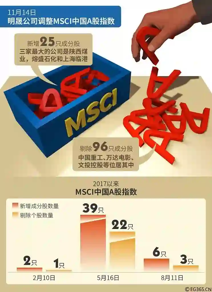 今年6月1日,MSCI新兴市场指数将正式纳入中国A股,而大金融板块也可能是受益者。此外,MSCI也将在今年分两步审议纳入A股(5月半年度审议纳入比例2.5%和8月季度审议纳入比例提升至5%)。基于5%的纳入比例,A股约占MSCI新兴市场指数的0.73%,占亚洲市场(除日本外)指数的0.83%,占ACWI全球指数的0.1%。