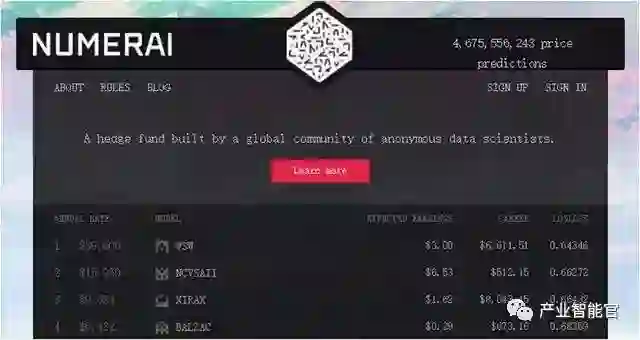 美国创业公司Numerai是一家以众包模式结合人工智能技术的对冲基金,通过人工智能技术,可以避免传统程序化交易因无法根据实时发生的市场变动调整算法,造成资产损失的风险。自2015年底建立以来,已经有数千人参与了其机器学习模型的建设,并收到近47亿次股票价格预测。