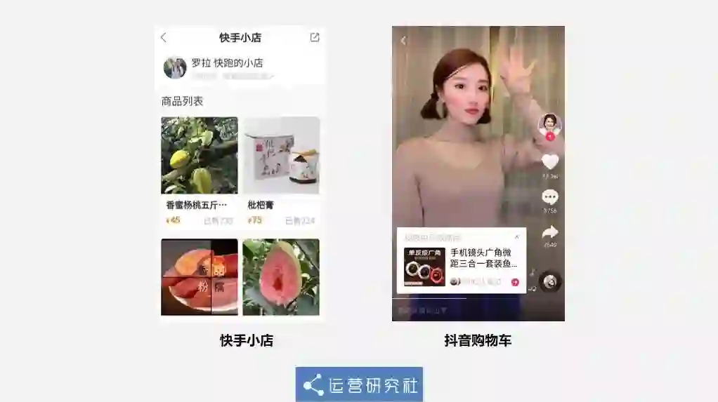 除了淘宝直播的赋能,快手和抖音也在去年12月分别推出了“快手小店”和“抖音购物车”,帮助平台博主实现短视频卖货。