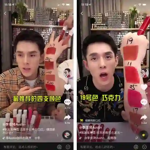 18 年双 11 ,李佳琦跟马云 PK 直播卖口红,5 分钟卖出 15000 支,秒杀马云的同时,记录至今无人能破。