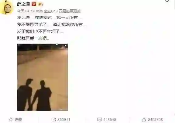 要说今天最火的人无疑是歌手薛之谦,由于在今天凌晨发布的一条与前妻复合的微博,牢牢的占据娱乐版头条。