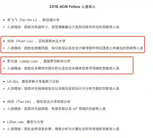 【导读】国际人工智能学会(前身为美国人工智能学会)AAAI宣布,全球有7位学者被擢升为该学会的Fellow。其中有两位华人学者,分别是美国罗彻斯特大学计算机系教授罗杰波, 美国亚利桑那州立大学的计算机科学与工程学院教授刘欢。