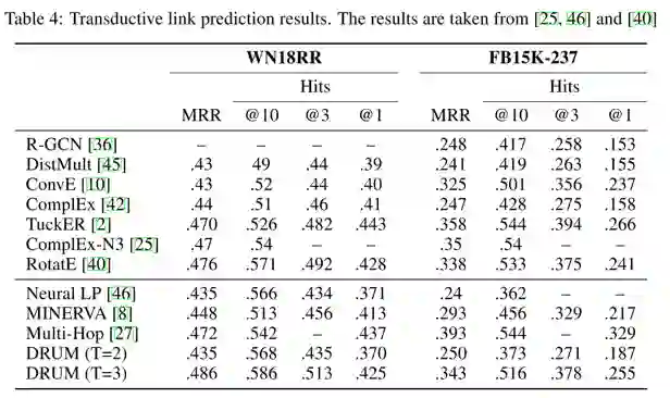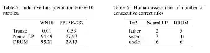 现有的多数链接预测方法都不能处理新的实体,并且多为黑盒方法,使得其预测结果无法解释。本文提出了一种新的端到端的可微的知识图谱上的规则学习方法DRUM来解决这两个问题。