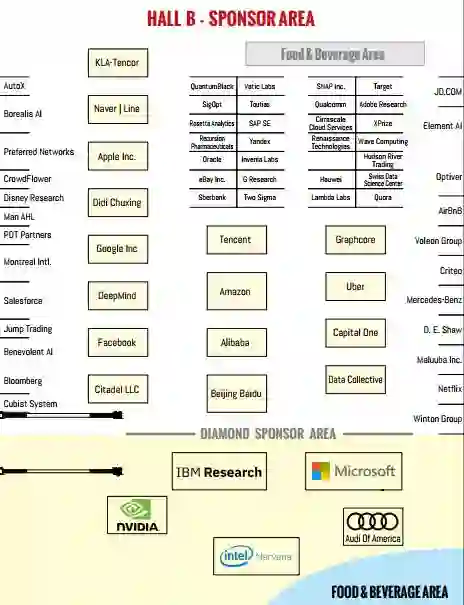 翻开大会手册(https://media.nips.cc/Conferences/NIPS2017/NIPS-2017-Conference-Book.pdf),首先是赞助商,会议手册用了整整6页将他们放下。NIPS 2017的钻石赞助商是:Intel Nervana、英伟达、奥迪、IBM Research和微软。